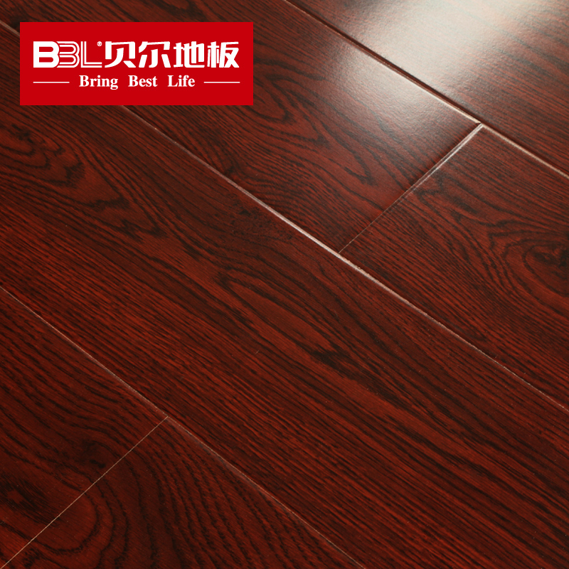 贝尔地板 强化复合地板 12mm地暖木地板 WL1012 U雅红色