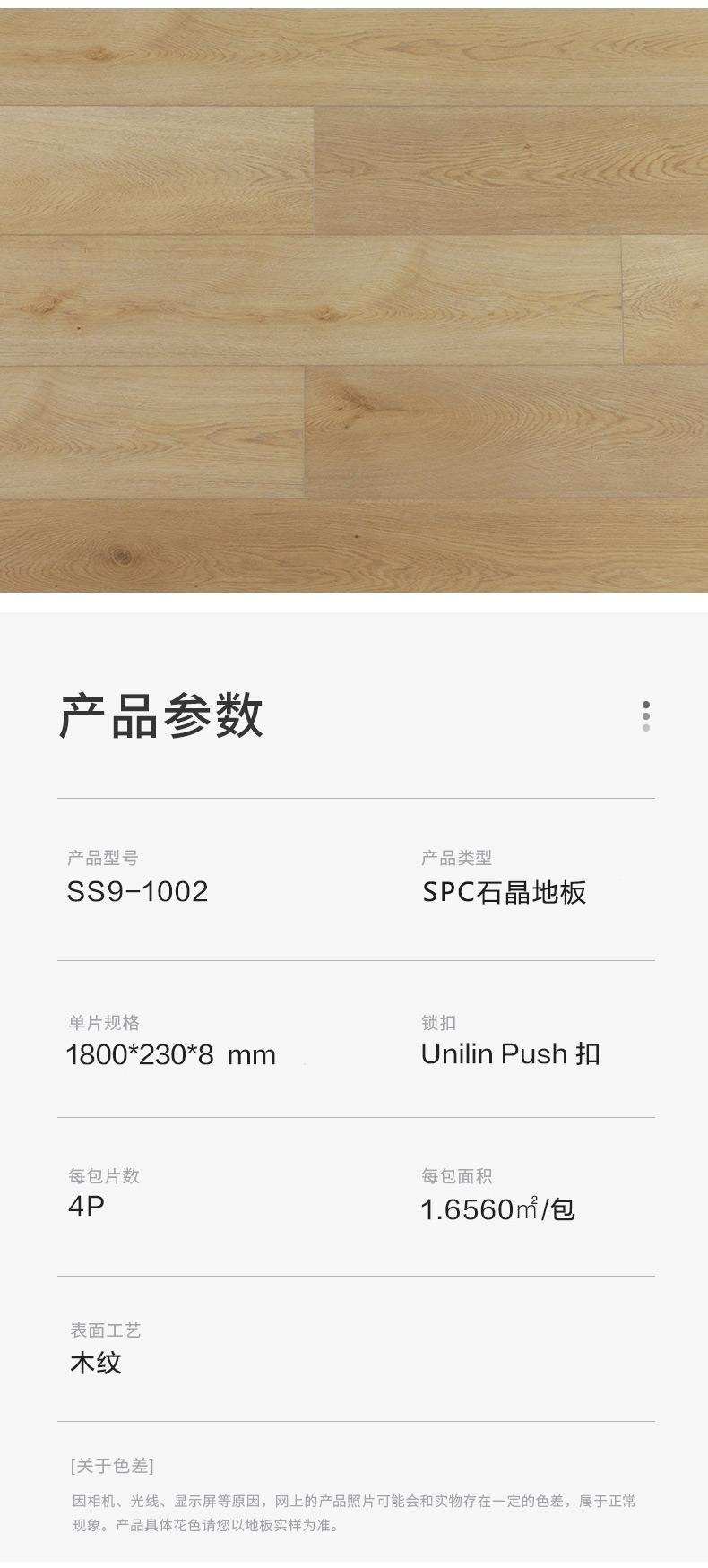 贝尔地板 SPC超级石晶地板 孕婴级环保超耐刮擦防水防火 8mm SS9-1002