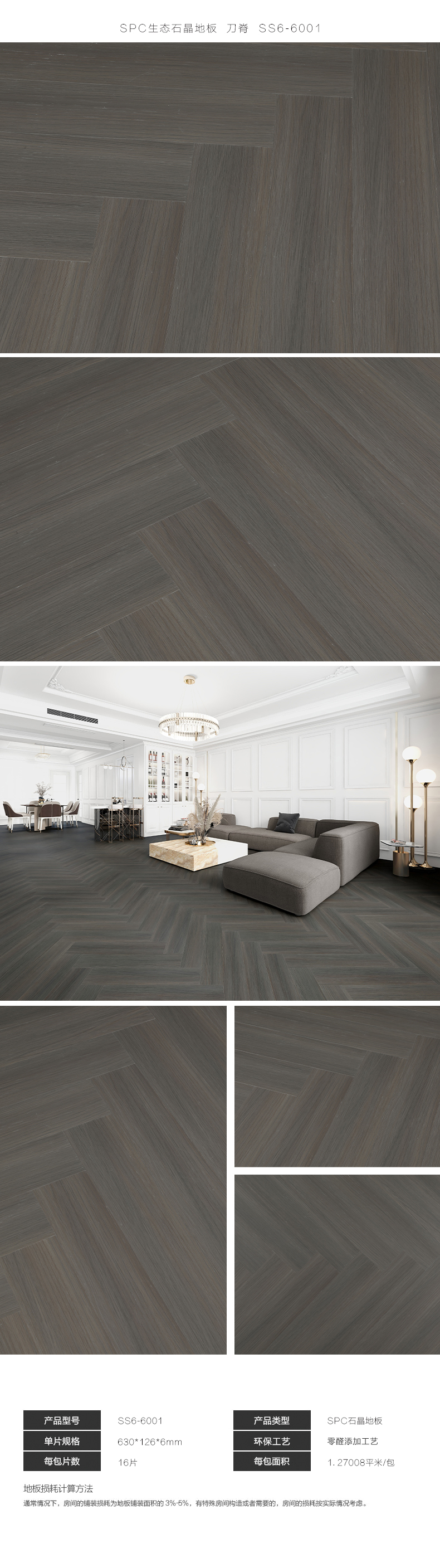 贝尔地板 SPC生态石晶地板 人字拼 6mm BBL-SS6-6001 630*126*6+0(0.5)/16P