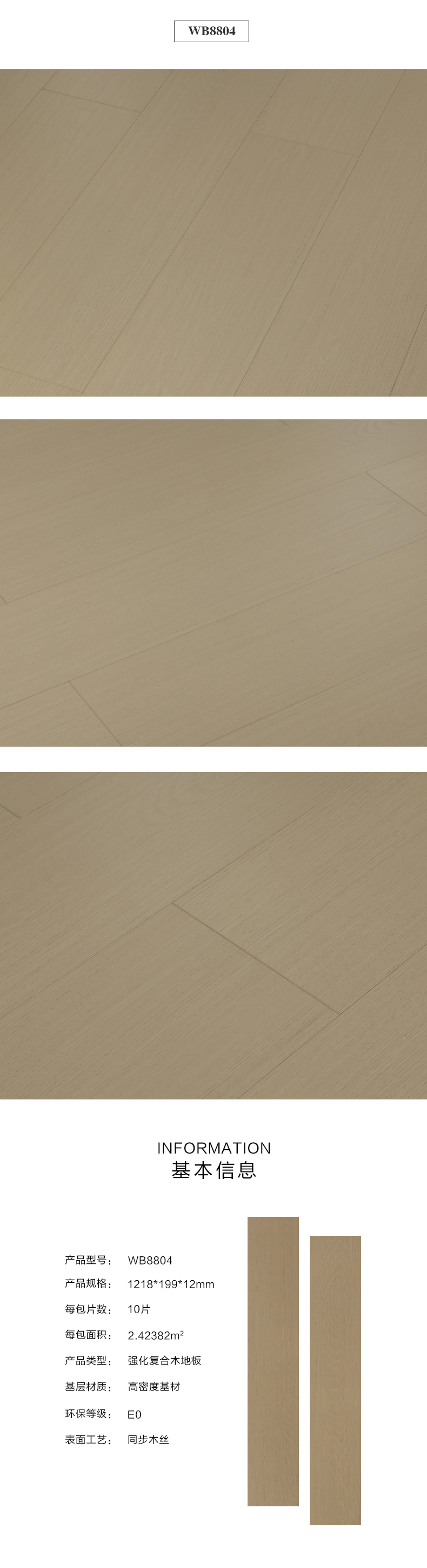 贝尔地板 WB8804 时尚设计系列 强化复合地板12mm