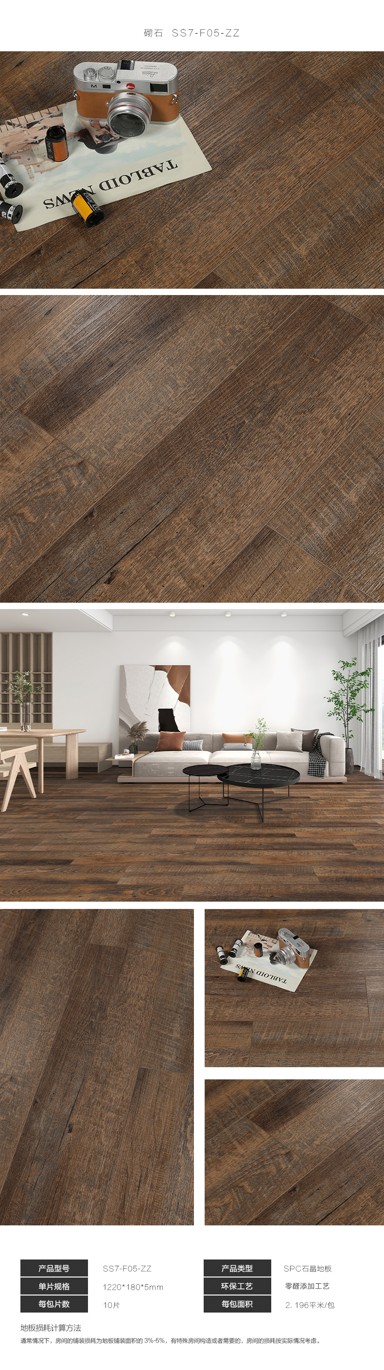 贝尔地板 SPC生态石晶地板 绿色环保 防水防火 SS7-F05-ZZ