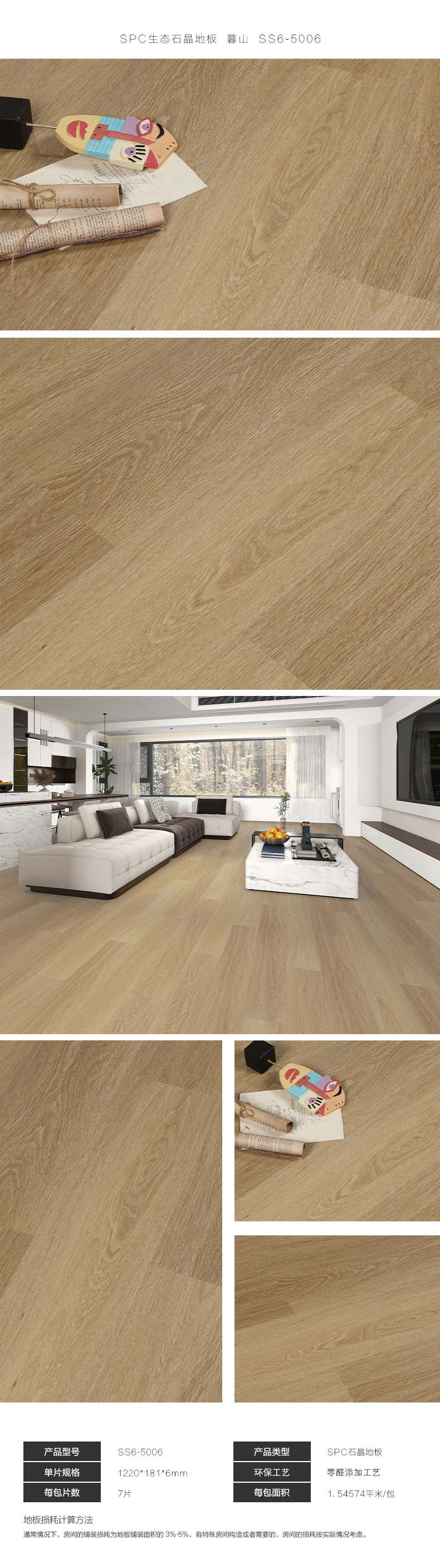 贝尔地板 SPC生态石晶地板 6mm SS6-5006 1220*181*6+0(0.5)/7P