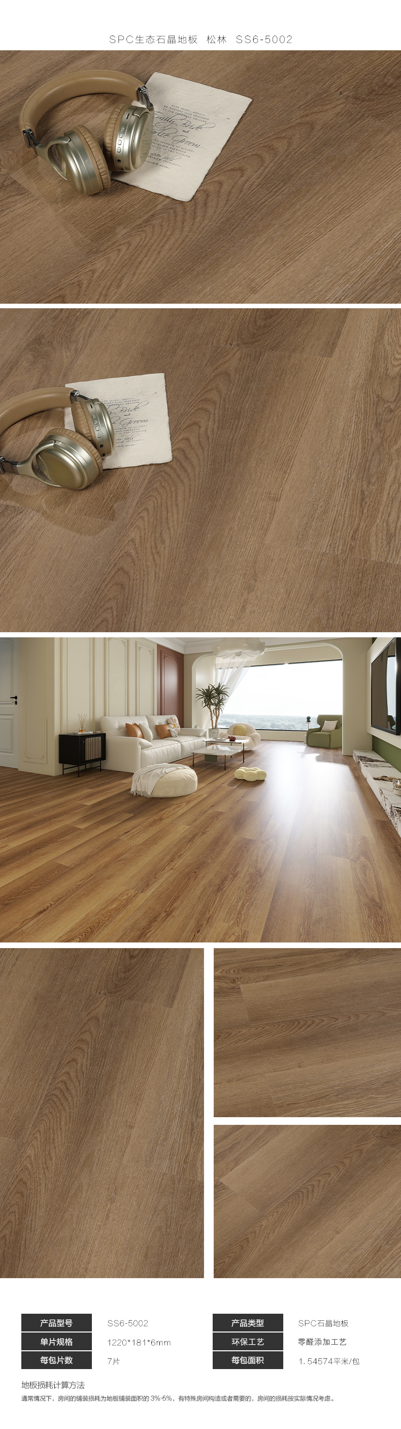 贝尔地板 SPC生态石晶地板 6mm SS6-5002 1220*181*6+0(0.5)/7P