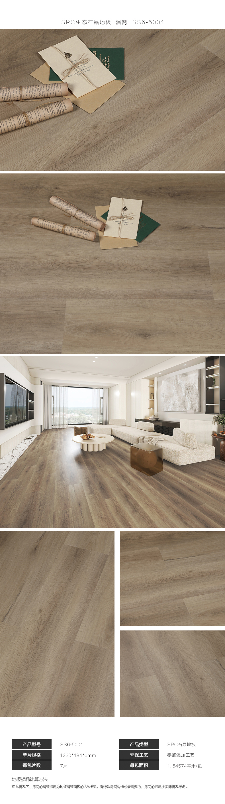 贝尔地板 SPC生态石晶地板 6mm SS6-5001 1220*181*6+0(0.5)/7P