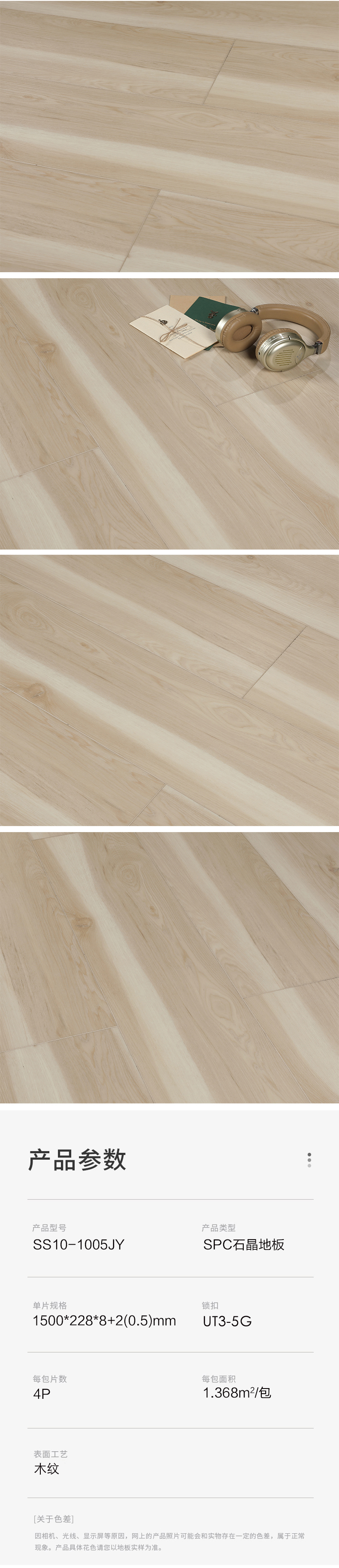 贝尔地板 SPC生态石晶地板 SS10-1005JY 1500*228*8+2(0.5)/4P