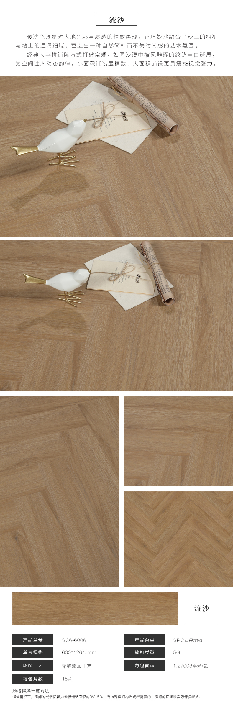 贝尔地板 SPC生态石晶地板 人字拼 6mm SS6-6006 630*126*6+0(0.5)/16P