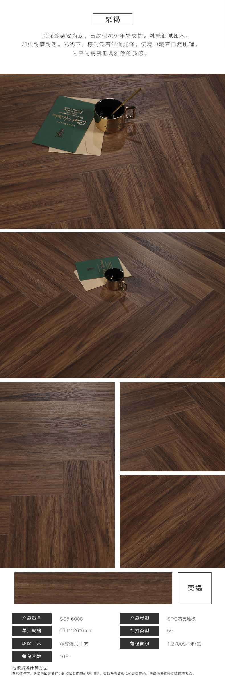 贝尔地板 SPC生态石晶地板 人字拼 6mm SS6-6008 630*126*6+0(0.5)/16P