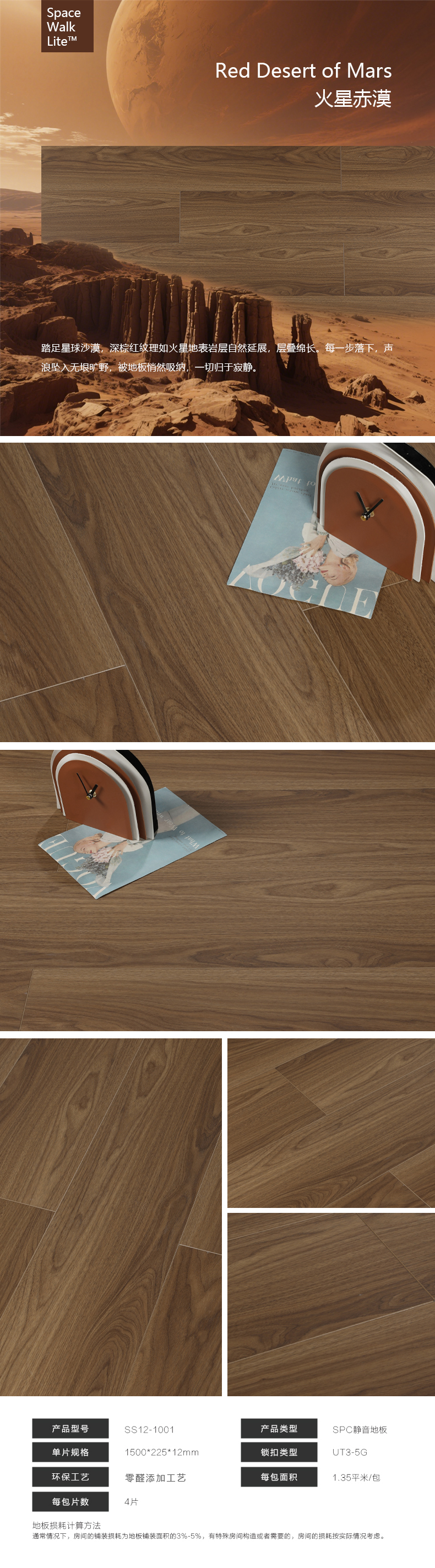 贝尔地板SPACE WALK 太空静步系列 SPC生态石晶地板 12mm SS12-1001 1500*225*10+2(0.5)/4P