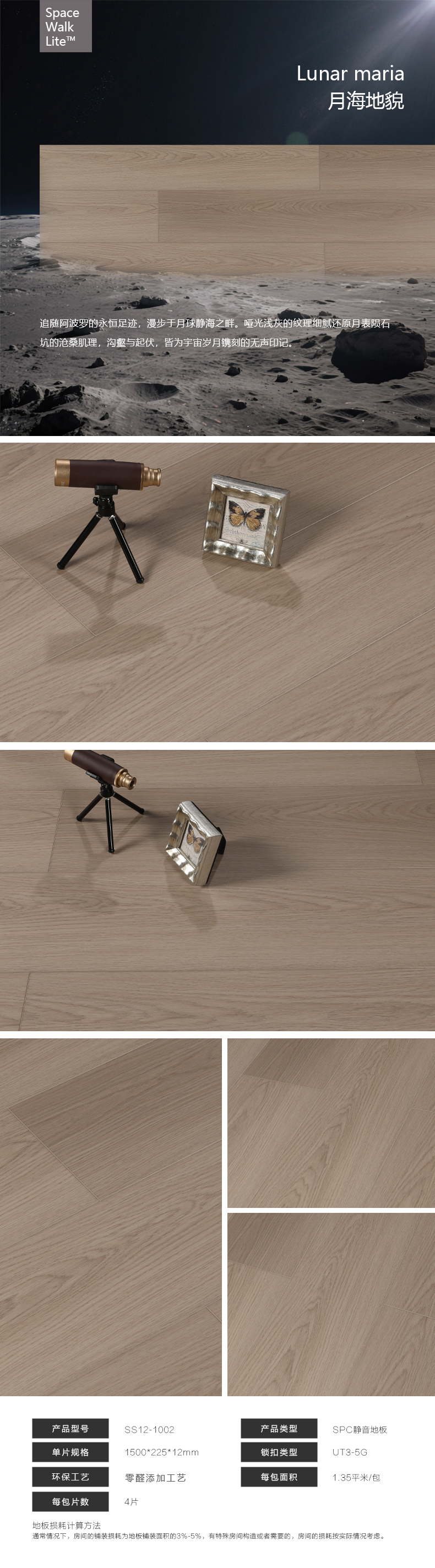 贝尔地板SPACE WALK 太空静步系列 SPC生态石晶地板 12mm SS12-1002 1500*225*10+2(0.5)/4P