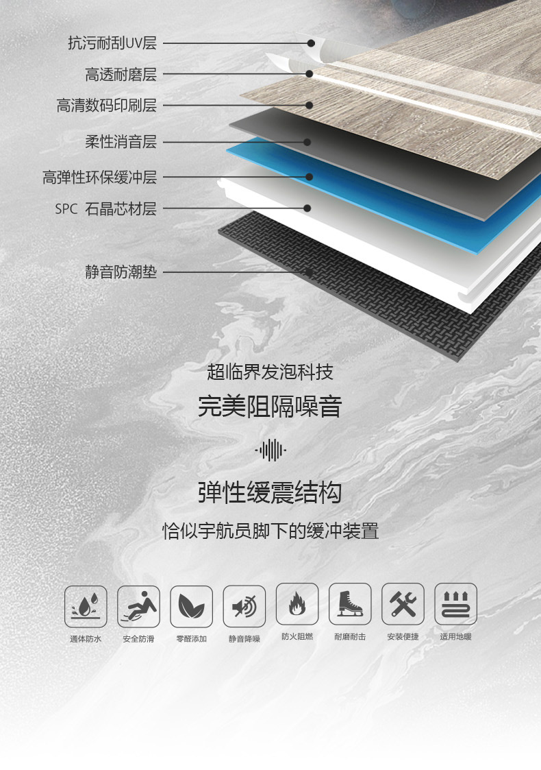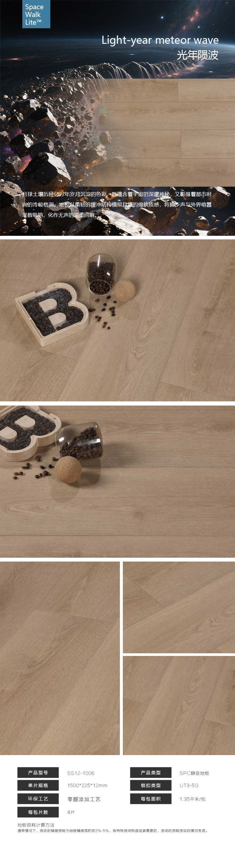 贝尔地板SPACE WALK 太空静步系列 SPC生态石晶地板 12mm SS12-1006 1500*225*10+2(0.5)/4P