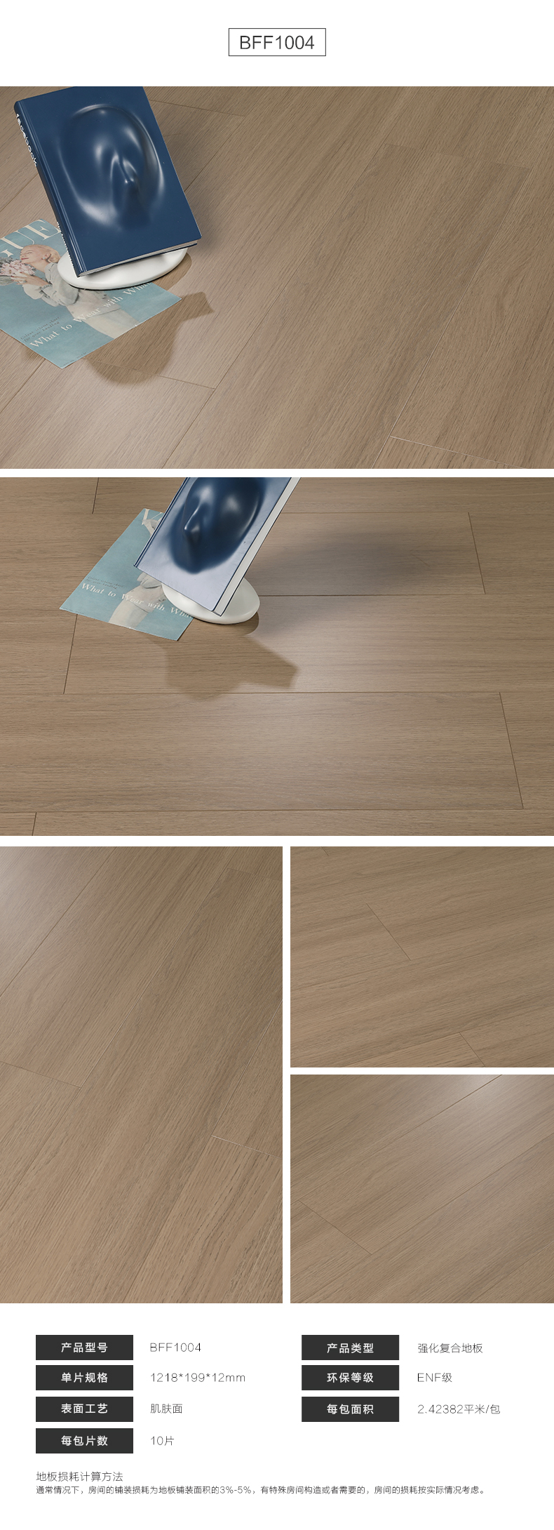 贝尔地板 抗菌无醛芯系列 12mm BFF1004