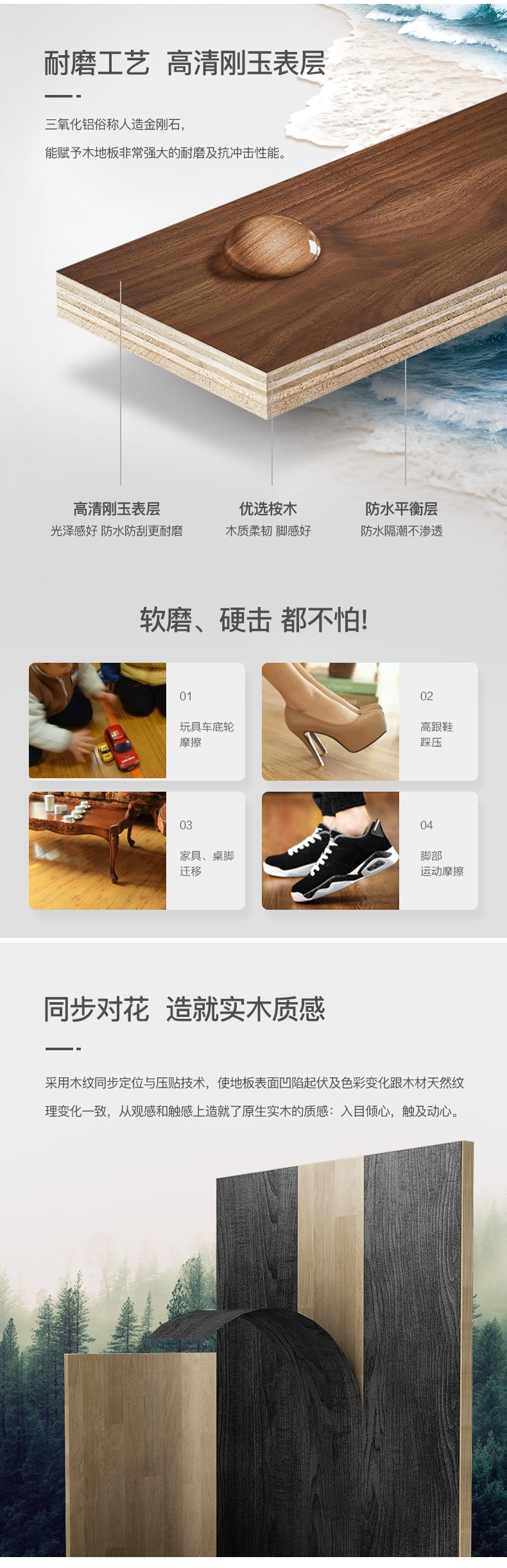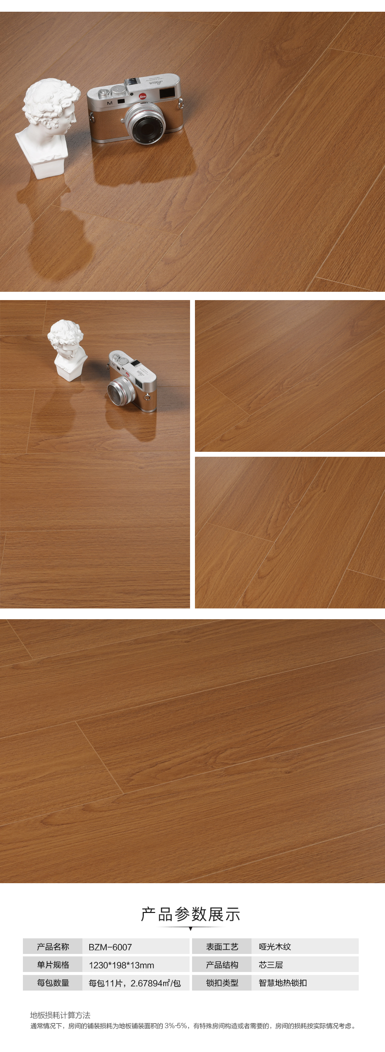 贝尔地板 优+系列 耐磨面新三层实木复合地板 BZM-6007饰面新三层 13mm