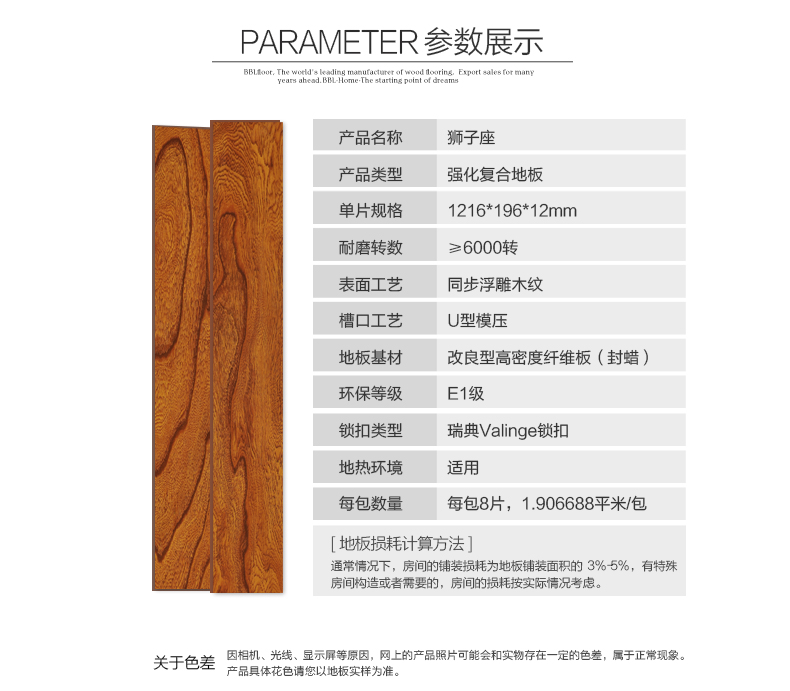 贝尔地板 强化复合木地板 12mm仿古榆木浮雕 十二星座系列 狮子座 SKY005(L)
