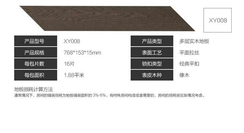 贝尔地板 鱼骨拼系列 橡木多层实木地板平面拉丝 XY008